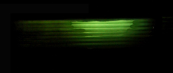 Home | Audio & Scores | Biography and Work  | Performances Whitewater is an open-form piece for improvising saxophonist and Max/MSP. The performer is limited to playing only multiphonics (and whichever of the multiphonics individual partials are playable) as well as having a set of guiding principles on style and how to interact with the computer part. Max/MSP analyses the multiphonics and plays back representations of them, while using cellular automata to both modify the existing multiphonics and to 'breed' new ones. The player and computer thus participate in a limited feedback loop with no imposed top-down form. The form is an emergent property of the moment-to-moment interactions between computer and player. The piece's starting point was the idea of representing audio spectra as 2D visual patterns which could then evolve as a cellular automata (Conway's classic 'Life' in this case), altering the multiphonic as it goes. The main issue here is that of appropriate mapping; in such a way as to allow the spectra to evolve but without their rather fragile sonic identity being obliterated by the CA. Rather than literally mapping the visual interaction on the grid to sound, the partials in the multiphonic and a set of related 'shadow partials' are treated to an algorithm based on the 'Life' rules system – I'm indebted to Pierre Alexandre Tremblay for crucial elements of this idea and for coding the CA algorithm. Each partial is treated as a cell and subjected to a 'Life'-like rule system which decides if partials live or die, as well as allowing the possibility of mutation within the multiphonic between itself and the shadow-partial or a corpus of previously played multiphonics. Audio and Score Performance History Analysis from thesis For any wind instrument(s) and Max/MSP: Duration 15 minutes or more The aim of Whitewater is to use multiphonics as harmonic material and focus on their inharmonicity. The piece also aims to build on the interaction model used in Primes and make a piece that is truly interactive on the harmonic level. To achieve this, Whitewater uses bounded improvisation with a choice of material that is wider (any stable multiphonic and its constituent single pitches) but with a more robust harmonic identity than Primes. Whitewater also improves on the interaction by using a computer patch that has equal agency to the live player in terms of leading the evolution of the piece. To contribute meaningfully to the harmonic evolution of the piece and on an equal footing with the live player, the computer uses a cellular automaton as a life-like spectral filter. The computer analyses the input multiphonics in real-time and responds with its own version in the form of sine waves, the computer then breeds new versions of the multiphonic by treating each partial of the spectral data as a cell in a cellular automaton—see below for a detailed discussion of the cellular automaton. The player's subsequent interaction with these 'bred' multiphonics creates a loop whereby the cellular automaton keeps altering the data and at the same time is constantly reseeded by new data from the performer, which is itself is a response to the what the computer does. Unlike Primes, the computer here has complete agency, it has the same level of responsibility as the performer to alter or stop the piece. The computer's agency is quasi-random and not a true intelligence like the live player, but the material and the interactions allowed by the score are simple enough for both agents to contribute equally: in effect, the live player is brought down to the level of the computer in terms of decision making. Left to its own devices, the computer may become locked in a loop or may simply stop, depending on the particular material in circulation at that moment, the player's job is to lead the computer – as a charmer leads a snake. [1.1] Cellular Automata: For me, if one chooses to accept a definition of music as organised sound, the organisation needs to be perceivable on some level. For music to be understandable it must have a level of perceivable organisation which falls between two possible states—the extremes and boundaries of which differ for each listener. At one extreme is the state of order , with minimal variety and maximal predictability, while the other extreme is that of maximal variety and correspondingly minimal predictability known as chaos. Music is a lifelike entity which exists in the area between these two states. Strange attractors also exist in this 'inbetween' state which is characterised by a variable mixing of order and chaos. The attractor never comes to rest in either state but also doesn't necessarily fall into a periodic oscillation; it may be infinitely varied. Strange attractors sit at this boundary between chaos and order in the same way that indeterminacies in music may oscillate in a seemingly random way inside a fixed space. In my portfolio are examples that represent this process in sound, such as the ever shifting harmonic relationships between live multiphonics and the evolving computer-generated multiphonics in Whitewater, or the overlapping independent lines of Lorenz. Cellular automata are a class of logical automaton processes in which the repeated application of simple interactive rules to a set of two state (on-off) cells on a grid can produce an astonishing variety of complex systems. Mathematical description of CA from Wolfram The best known example of these is John Conway's 'Game of Life' from 1970, which owes its name to the surprisingly life-like dynamic structures which can arise from many starting conditions. Illustration 19 shows three successive generations taken from a Game of Life run. The continuous evolution of the shapes is clear even in a small sample such as this. Cellular automata are used in my piece Whitewater as the engine by which the computer evolves material from the multiphonics received as live input. From my musical perspective, sy